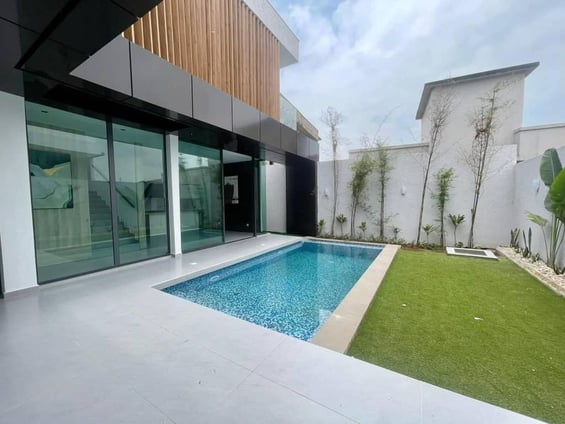 Cette villa duplex haut standing avec piscine lumineuse est parfaite pour les couples professionnels, avec un accès facile aux transports et aux commodités locales.